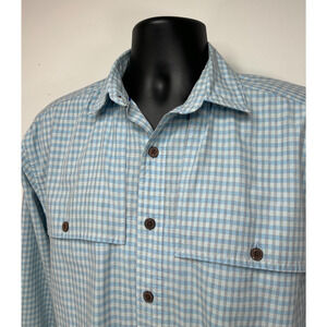 Patagonia Island Hopper II Vented Shirt Blue White Gingham Mens Size Small