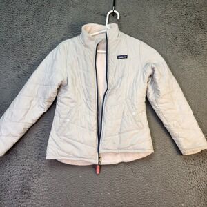 Patagonia Jacket Womens Medium Beige Reversible Full Zip Fleece Quilted Coat Warm