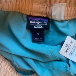 Patagonia Kids Baggies Shorts Size Small Recycled Nylon Aqua Peach NetPlus