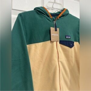 Patagonia Kids' Large Micro D Snap-T Fleece Jacket Green Tan Hood NWT