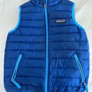 Blue puffer vest by Patagonia. Ideal for outdoor adventures.