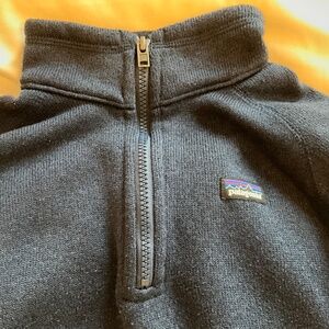 Stand-up collar, quarter-length front zipper with wind flap, and zipper garage