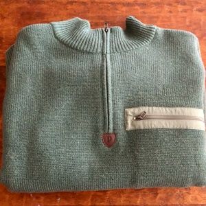 Originally, the Patagonia Alpiniste sweater was a reinvention of the hearty, boiled-wool sweaters favored for a century by Chamonix guides: The wool provided warmth even when wet and the dense knit kept out much of the wind. For the original Alpiniste, we gave the soft, heavy-gauge merino wool a twist before knitting, and brushed the inside to provide extra loft and warmth. Our reincarnation is made in a gutsy 5-gauge lambswool/nylon blend. With a faux leather tab to finish the quarter-zip openi