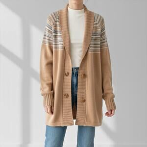 Patagonia Lambswool Scandi Cardigan Sweater L Camel Tan Fair Isle Nordic Boho