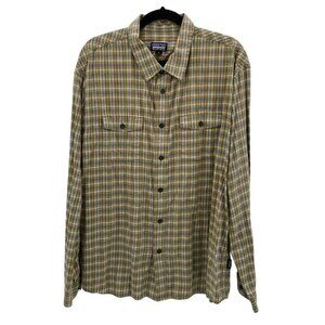 Patagonia Long Sleeve Button Down Tan/Blue Shirt Men’s Size XL