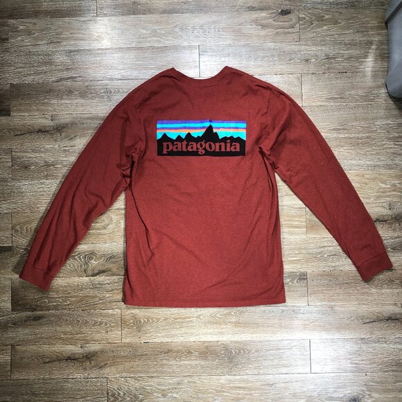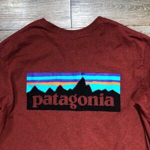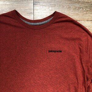 Patagonia Long Sleeve Responsibili-Tee T Shirt Maroon Rust Mountain Logo Size M