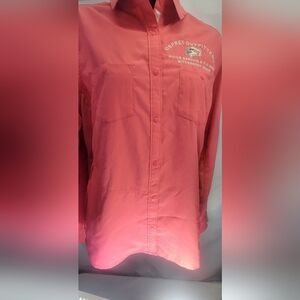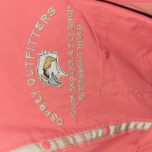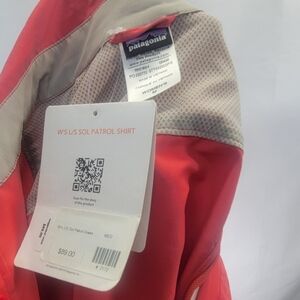 New with tags Patagonia long sleeve button-down Sol Patrol top in coral. There is an embroidered business name on the breast pocket that can be removed.