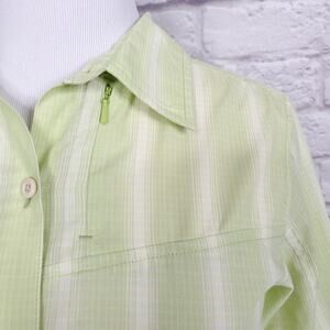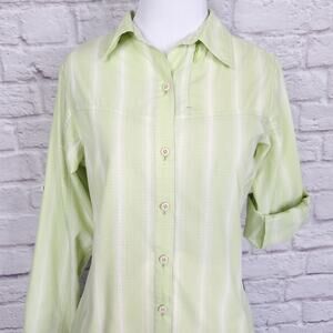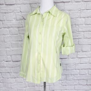 Patagonia Long-Sleeved Island Hopper Shirt Button Down Green White Stripe Sz 4