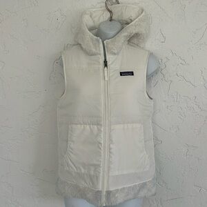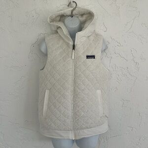 Please read the full description before ordering. This is a reversible vest. The first picture is a Stock photo. The next 3 pics are the vest with the fuzzy side out. The vest is perfect when worn this way. The next pics are the vest with the smooth side out. Please see the pics where the fuzzy shows when worn this way. The fuzzy has a light blue staining on it. I think it’s dye from an article of clothing that was worn under. It still can be worn both ways but I wanted to be honest. Non smoker home.