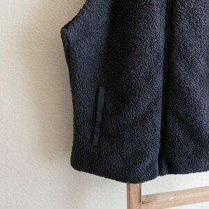 - Long, lean vest with tonal taffeta trim at front zip and pockets