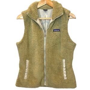 Patagonia Los Gatos Zip Up Fleece Vest Womens M Khaki Outdoor Slow Fashion Fuzzy