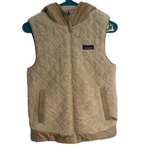 Soft & Fluffy! Reversable Los Gatos hooded Vest. Size small womens. Zippable pockets on the fluffy side and flat open pockets on the smooth side. Great, reliable Patagonia quality!!