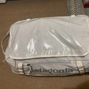 Lt. gray Patagonia blackhole rolling duffle bag. Size 40L. Bag shows some signs of use, but is in good condition. Great as a carryon bag. Wheels and bottom are intact and still in good condition.