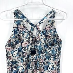 Patagonia Magnolia Spring Blue Black Floral Twist Back Dress Womens Large