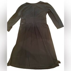 Patagonia Margot 3/4 length sleeve dress in black, size Medium. This outdoor, camping hiking athletic dress is 96% organicic cotton and 4% spandex. It shows wash wear but there are no holes, snags or rips. Approximate flat lay measures are 34” shoulder see to hem, 17” pit to pit and 14” at the waist.