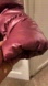 Warm Patagonia puffer jacket in maroon with bright orange zipper. Ideal for chilly days.