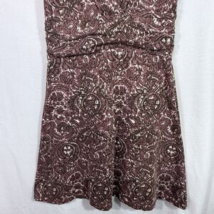 Patagonia Mauve Brown Sleeveless Abstract Paisley Organic Cotton Margot Dress Women's M Organic Cotton Ruched Outdoor Camping Hiking Athleisure Athletic Comfort Tank Dress Sustainable Flattering