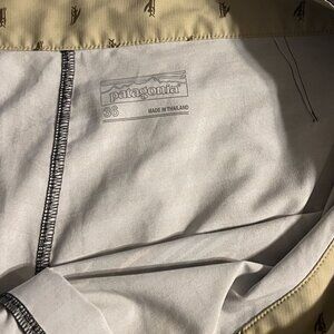 Designed for water enthusiasts, these Patagonia board shorts offer comfort and durability with their tropical design, making them a reliable choice for aquatic activities.