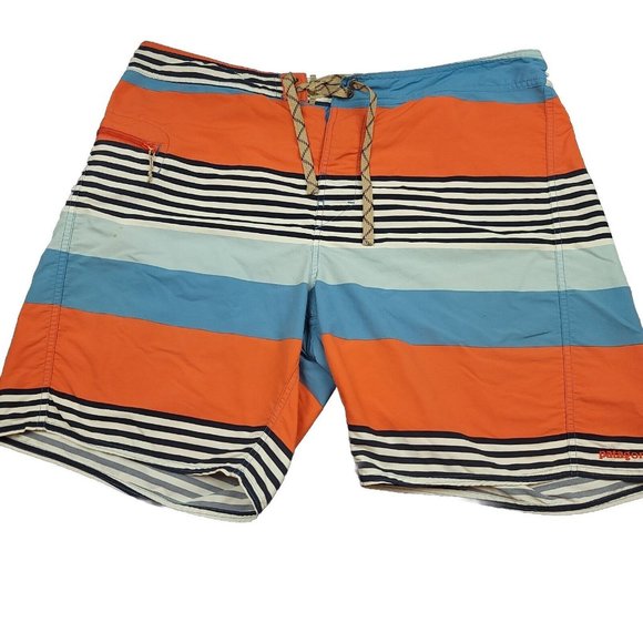 Patagonia Mens 40 Wavefarer Striped Board Shorts Orange Blue Swim Style 86620