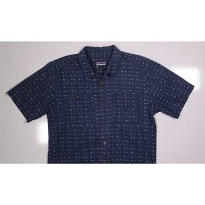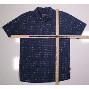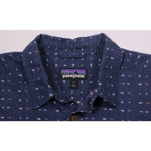 Patagonia Men's Back Step Blue Design Hemp Organic Cotton Button-Up Shirt S