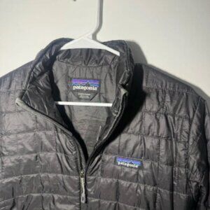 Stay warm and stylish with the Patagonia Men's Quilted Jacket. This black jacket offers comfort and durability for any adventure. Excellent condition S