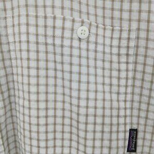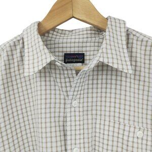 Patagonia Mens Button Front Short Sleeve Plaid Shirt Size L Seersucker White