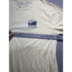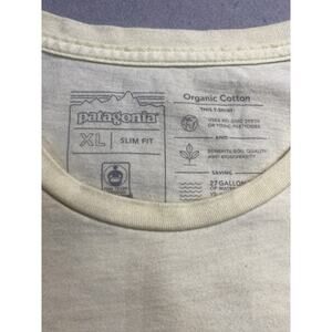 The Patagonia Men's Capilene Cool Daily Graphic Shirt in XL size offers a slim fit for a sleek and stylish look. Made of 100% polyester material, it provides comfort and moisture-wicking properties for active wear. The beige color and logo accents add a touch of branding to the shirt, making it a versatile choice for various occasions. With a pullover closure and slimming features, this T-shirt is perfect for men looking for a high-quality activewear top from a trusted brand like Patagonia.