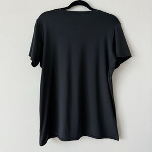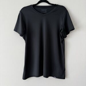 Shallow vneck short sleeve baselayer in black. The inside tag has been removed. Good overall condition. Please see pictures for details.