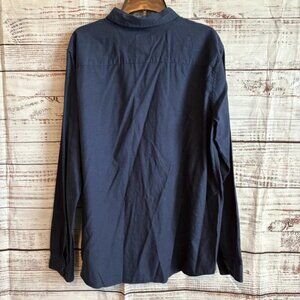 Stylish deep blue button-down shirt. Perfect for casual outings. Features a classic collar and chest pocket.