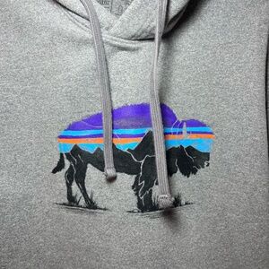 Patagonia Mens Fitz Roy Bison Uprisal Hoodie Sweatshirt Gray Graphic 39582 Small