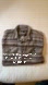 Stylish striped button-up shirt with a classic collar. Features a mix of brown, gray, and cream tones.