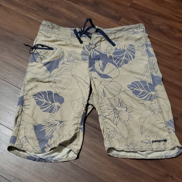 Patagonia Men's Floral Tan and Gray Board Shorts