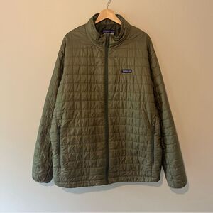 This versatile dark green Patagonia jacket is perfect for your next adventure. It's a lightweight puffer designed for hiking and other outdoor activities, but its sleek look makes it great for everyday wear too.