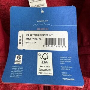 Patagonia Men’s Full Zip Sweater Jacket Red Size XL Regular Fit NWT