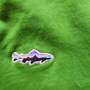 Keywords: Patagonia, Polo shirt, Mens polo, Green polo shirt, Trout logo, Short sleeve polo, Casual shirt, Embroidered logo, Outdoor wear, Sportswear, Comfortable polo, Preppy style