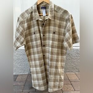 Patagonia Men’s Hemp Cotton Plaid Shirt L Short Sleeve Button-Down Tan