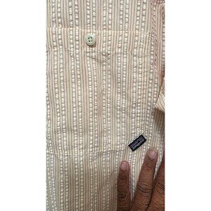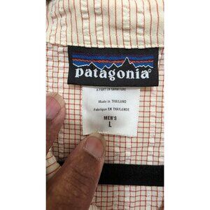 Patagonia Men's L Beige & Red Searsucker Striped Short-Sleeve Button-Up Shirt