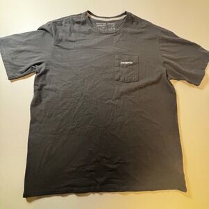 Keywords: Patagonia, Responsibili-Tee, T-Shirt, Mens, Large, Black, Pocket Tee, Mountain Logo, Short Sleeve, Crew Neck, Recycled Material, Outdoor Clothing, Casual Wear, Pre-owned, Logo Tee
