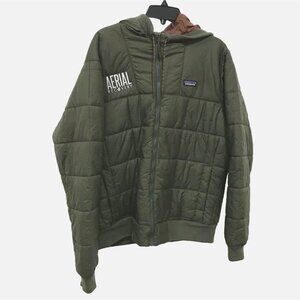 Patagonia Men's L Box Quilted Hoody Olive Drab OD Green Custom Logo Puffy Puffer
