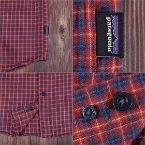 Patagonia Mens Large Vjosa River Red Blue Plaid Long Sleeve Button Down Shirt