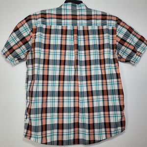 Patagonia Men's Large White Green Orange Black Plaid Button Up Cotton Polyester