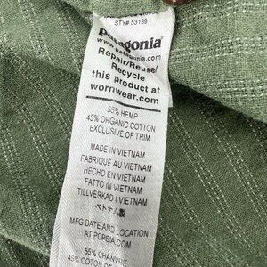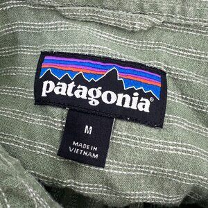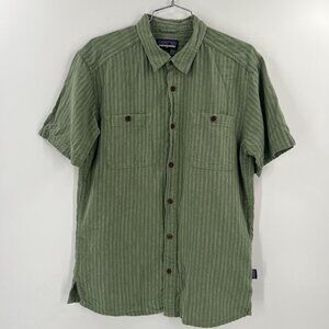 Patagonia Men's M Back Step Shirt Hemp Organic Cotton Green Stripe Outdoor