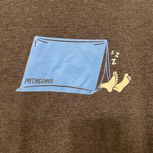 Patagonia Men's M Slim Fit Gray Sleeping In Tent Camping Graphic T-Shirt