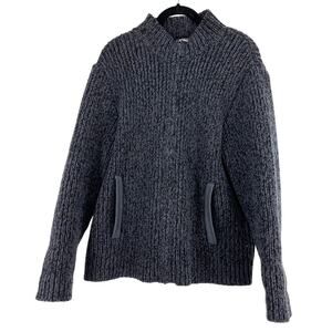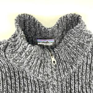 Patagonia Men's M-L Chunky Knit Wool Cotton Mock Neck Cardigan Gray Pockets