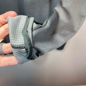 Patagonia Midweight Capilene Baselayer Shirt Gray Pullover Crew Neck Long Sleeve Polartec Diamond Backing Traps Warm Air Breathable Elastic Thumb Loops Sweat Wicking Quick Drying Stretch Patch Logo On Bottom Hem Winter Outdoor Nature Skiing Snowboarding