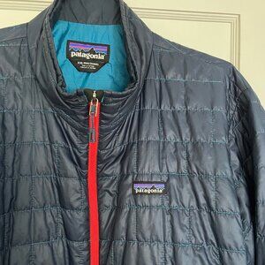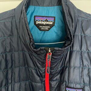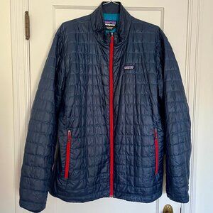 Patagonia Men's Nano Puff Jacket in Navy and Red Trim | XXL