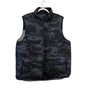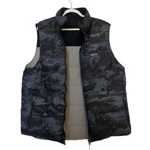 Patagonia Men’s Reversible Vest Gray Camo Black Puffer Zip Pockets Size XXL