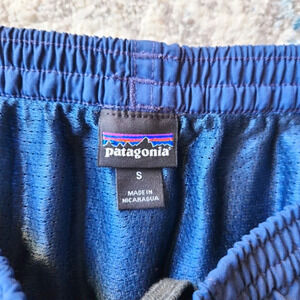 Men's Patagonia Shorts, navy, two front pockets one back buttoned pocket, elastic waistband, size small, and in EUC. This pair does have a lining.