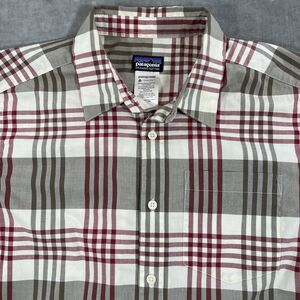 Patagonia Mens Small Beige Brown Plaid Button Down Shirt