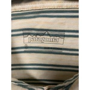 Patagonia Mens Small Peach White Striped Short Sleeve Organic Cotton Polo Shirt